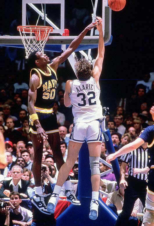He certainly did that; no matter that the Blue Devils, not the Midshipmen, advanced by virtue of a 21-point win. Navy finished 30-5 and Robinson was voted All-America. He averaged 22.7 points and 13.0 rebounds per game, while blocking a Division I-record 207 shots.