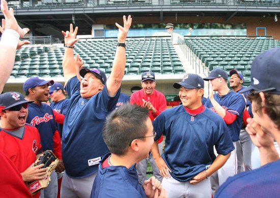 I remember times the Tides took batting practice, while Paw Sox players organized into a large oval. Between the cracks of the bats and songs from the loudspeakers, you’d hear lots of laughter emanating from Pawtucket’s ring around RJ. Their pre-game formation, I learned from a friend with the Sox, was known as the Circle of Trust.