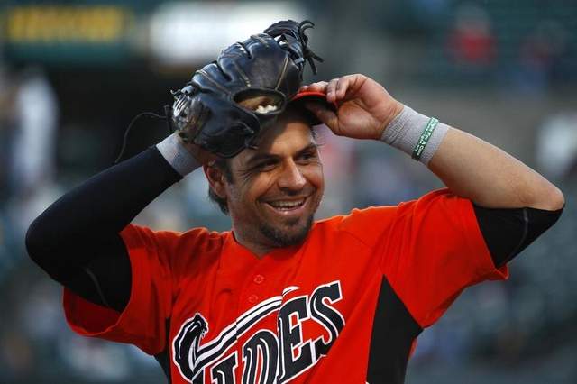 The same isn’t quite the case for his once-and-again double-play partner and the American League’s 2002 Most Valuable Player, Miguel Tejada. Like Roberts, Tejada labors under the watchful eyes of Norfolk’s strength and conditioning coach Ryo Naito. He joined the Tides a few weeks ago, emerging from apparent retirement after working out for the Orioles in Florida. Tejada has mostly played third base since, though tonight he was at shortstop, where he was a six-time all-star in the big leagues. His reactions with the glove have been sharp, his throws strong as ever. Tejada even plays with the same energy of the 23-year-old rookie he was in Oakland, some 15 years ago. But his swing lacks life, unable thus far to strike back at the advances of time. Only two of his first 22 hits as a Tide have resulted in extra bases.